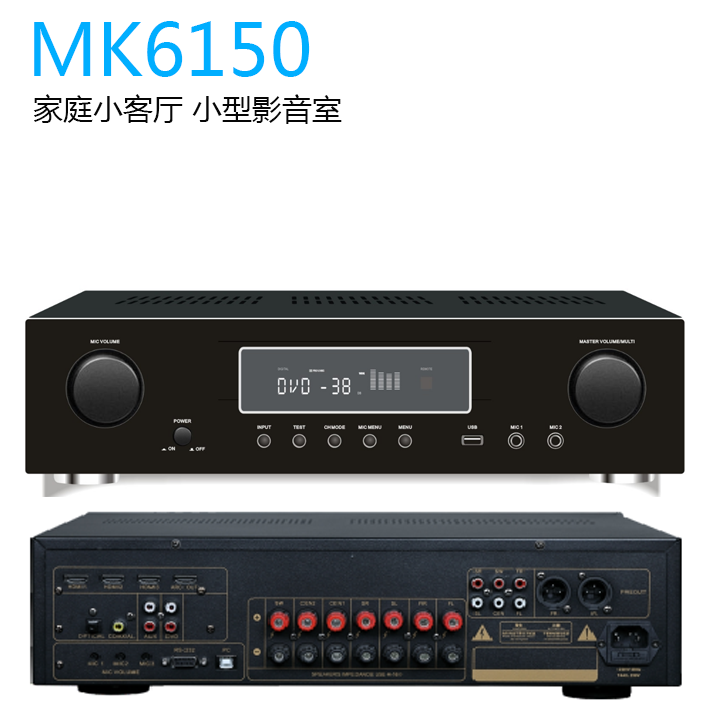 为客厅娱乐,别墅影音室,企业会议娱乐室而研发的5.1声道功放,电影解码器,DSO卡拉OK效果处理器,高清HDMI传输于一体。